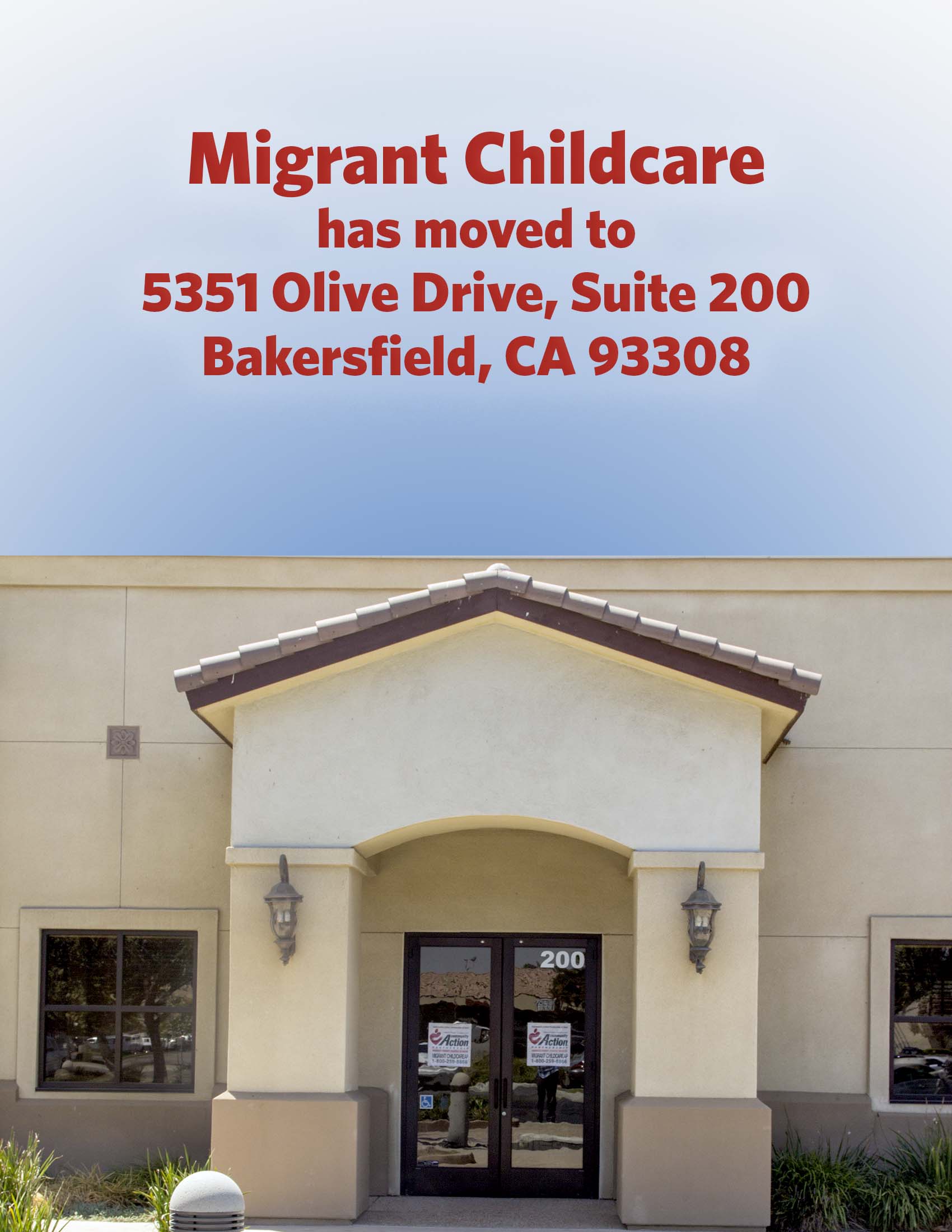 Migrant Childcare Has Moved The regional office of Migrant Childcare has moved to 5351 Olive Drive, Suite 200, Bakersfield, CA 93308. For more office locations… Grow Fit Families at Friendship House Community Center » « Do You Need Assistance With Your Utility Bills?